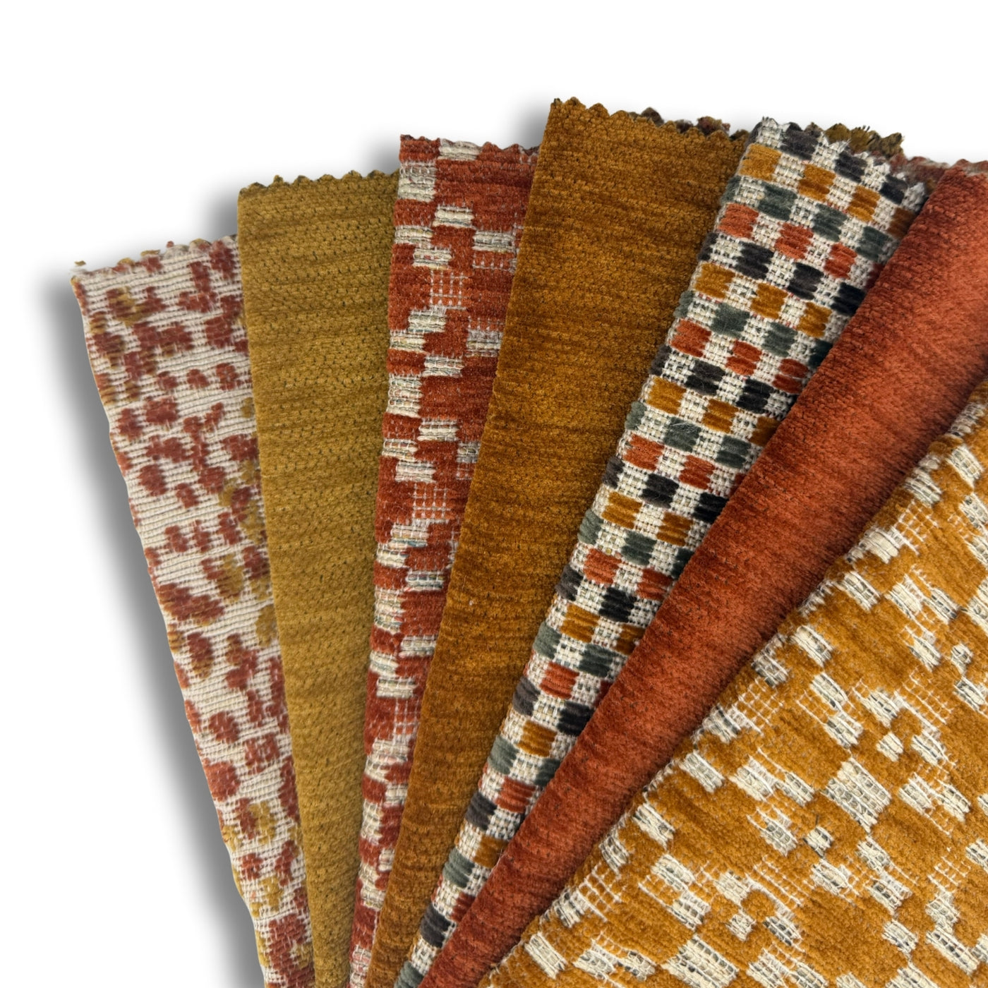 The beauty of this collection lies in its seamless color transitions — a thoughtful spectrum where one palette effortlessly leads into the next. Deep ochres and rust tones echo through mid-century-inspired neutrals, while soft mineral blues and sage greens bridge into rich plums and navy accents. This intentional overlap creates a continuous visual rhythm, allowing designers to mix fabrics across color families without disrupting harmony. Each hue was developed to feel both distinct and connected — making this collection a masterclass in color flow and versatility, perfect for creating layered, cohesive interiors that evolve from piece to piece.